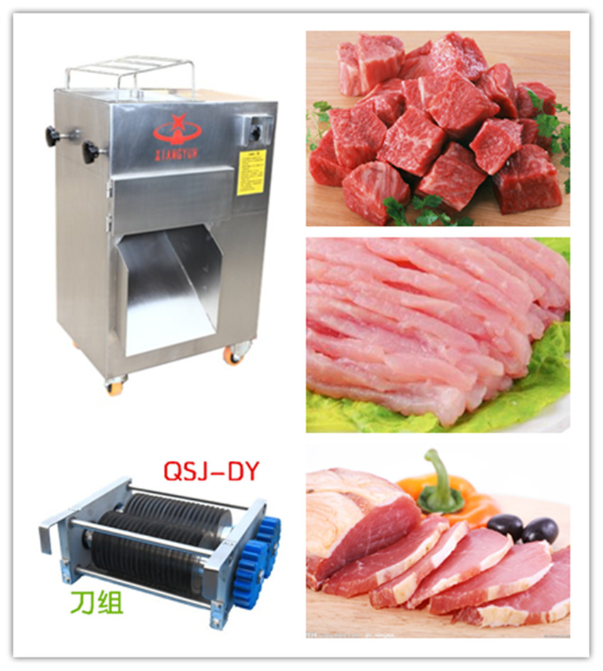 QSJ-DY型切絲切片機系列產品適用于將肉類切成絲、片、丁功能。此系列機型效率高,噪音低。適用于肉類加工廠、大型超市、配送中心、飯店等企業。