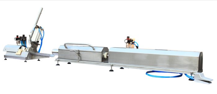 QJK型氣動拉緊打卡機、ZDJ型手動裝袋機。本機廣泛適用于豬牛羊肉卷成型,火腿腸灌裝等場合。產品預裝后的包裝膜被夾緊氣缸夾緊后,由拉伸氣缸把腸衣拉緊至要求,即可打卡封口及切斷。產品飽滿程度可以通過壓力調節裝置隨時調整,然后再由打卡氣缸打卡。裝袋機可以根據客戶產品需要定制缸筒直徑。氣動拉緊打卡機可以根據裝袋長度、帶徑和用戶需求,調整拉緊力大小和速度及鋁卡刀具的高低。 可保證產品的充實、飽滿,使產品切片效果好。 是您工作事業的好幫手。